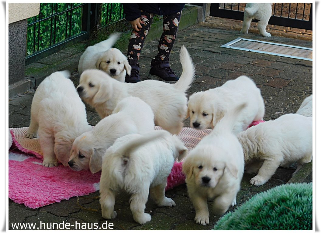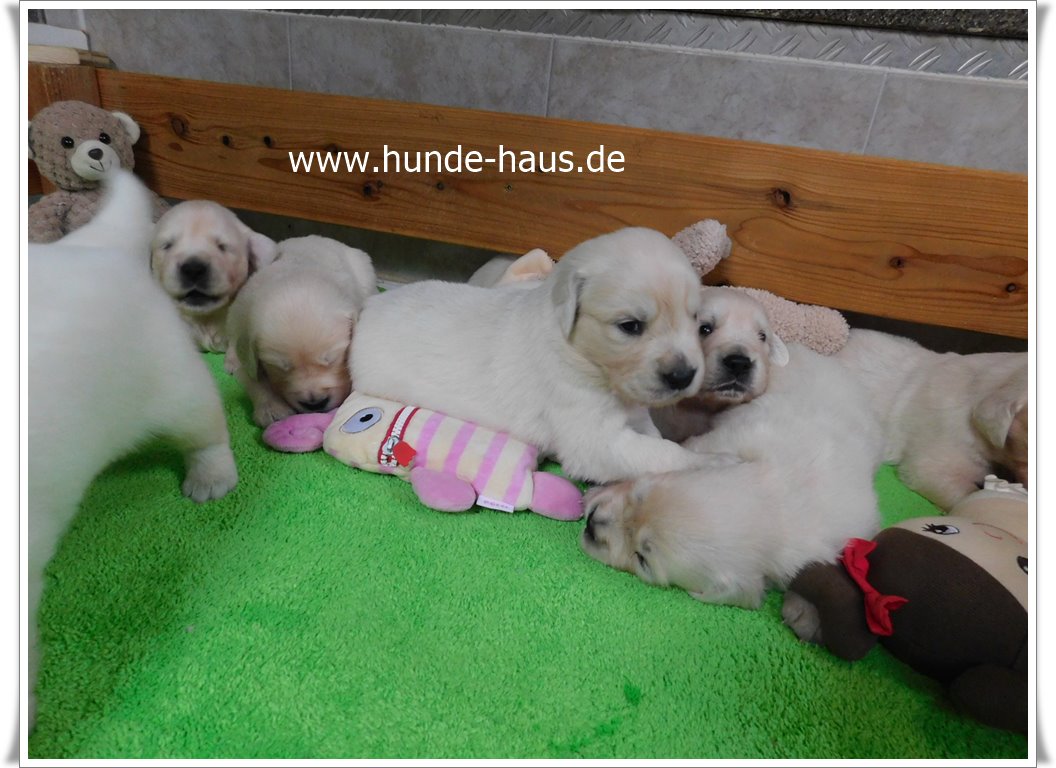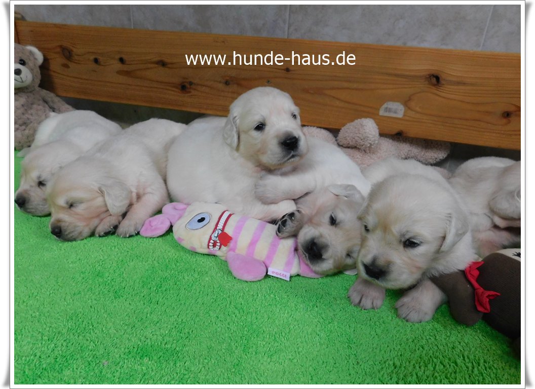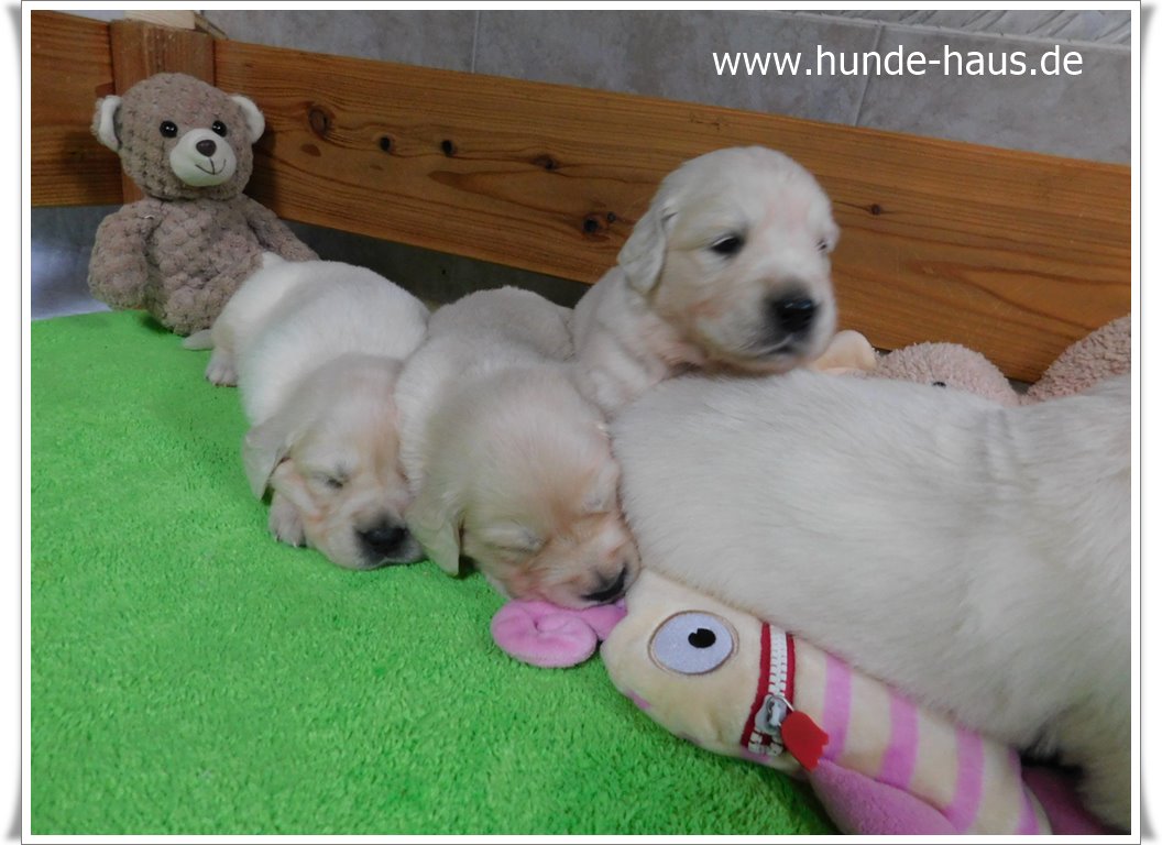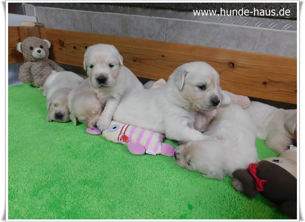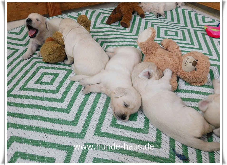 Golden Retriever Babys sind so wunderbar, und die kleinen Kinder von Hope mit ihren 5,5 Wochen sind noch ganz entspannt und fröhlich.