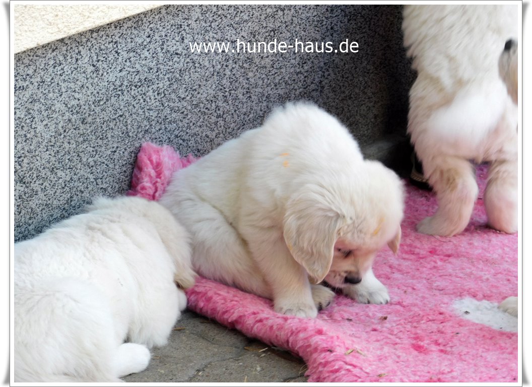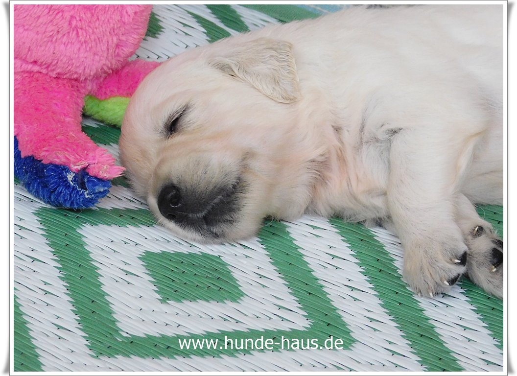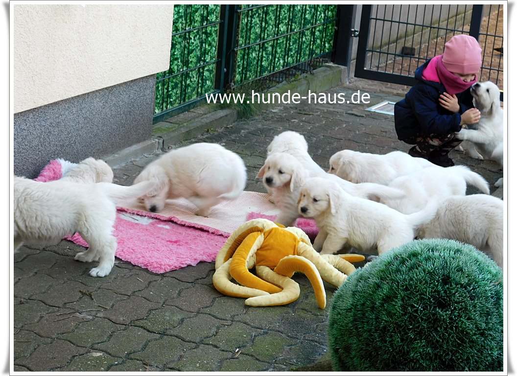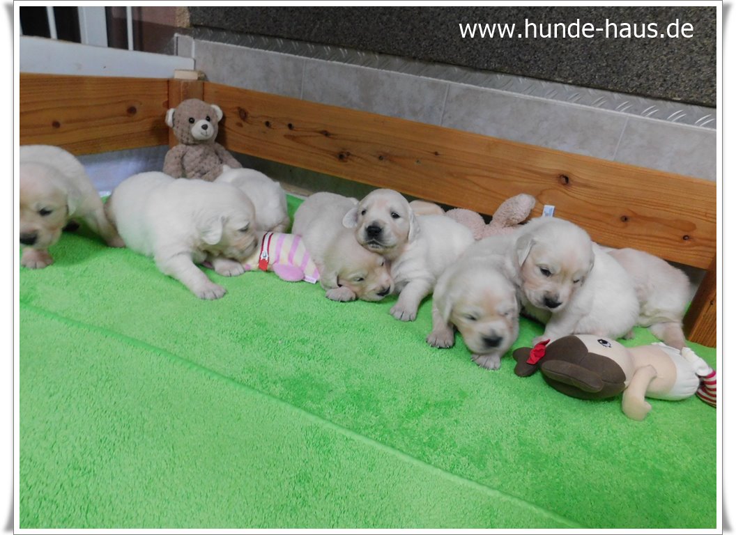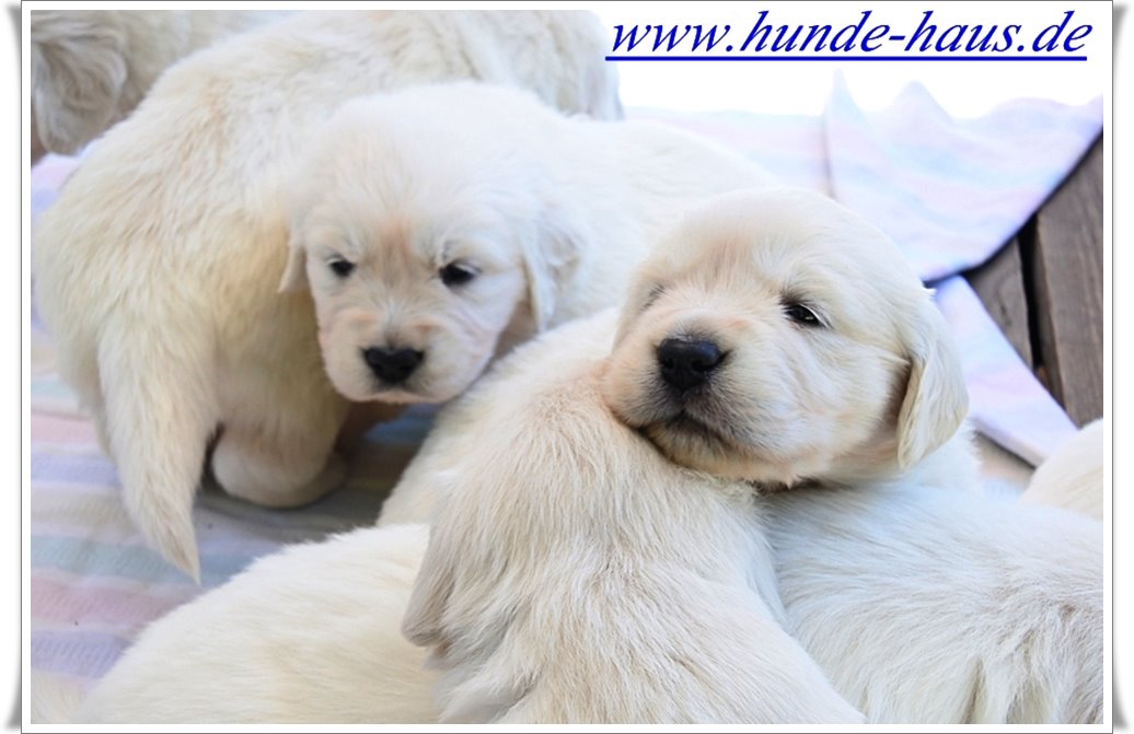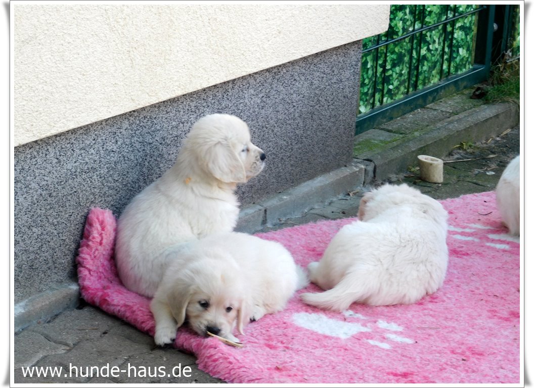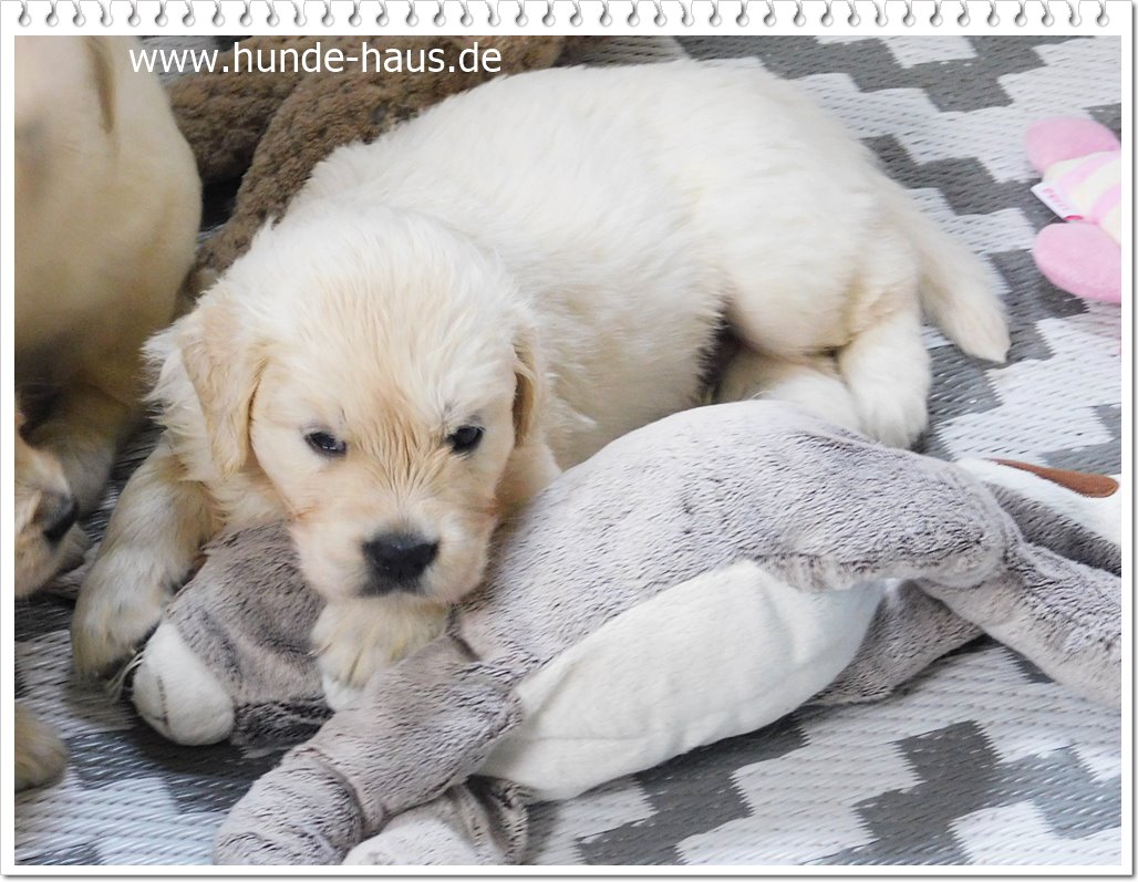 Golden Retriever Babys sind so wunderbar, und die kleinen Kinder von Hope mit ihren 5,5 Wochen sind noch ganz entspannt und fröhlich.