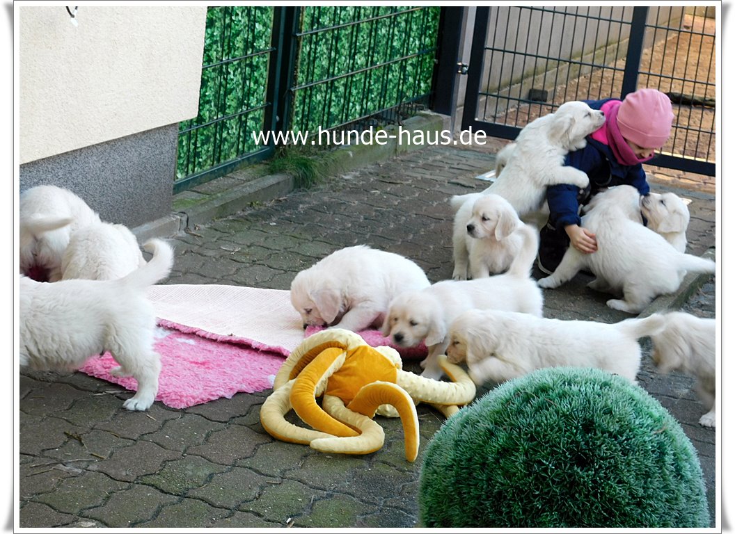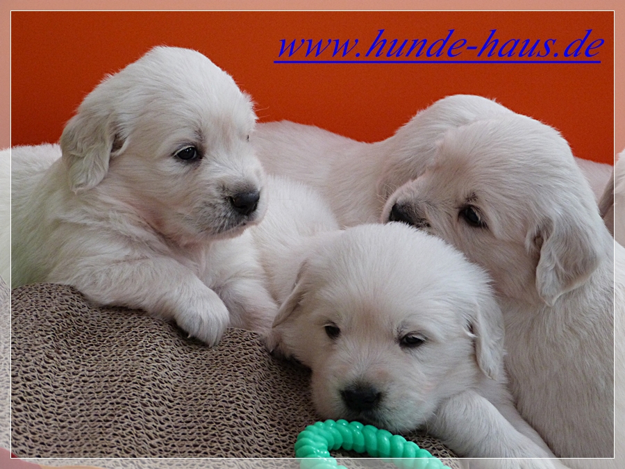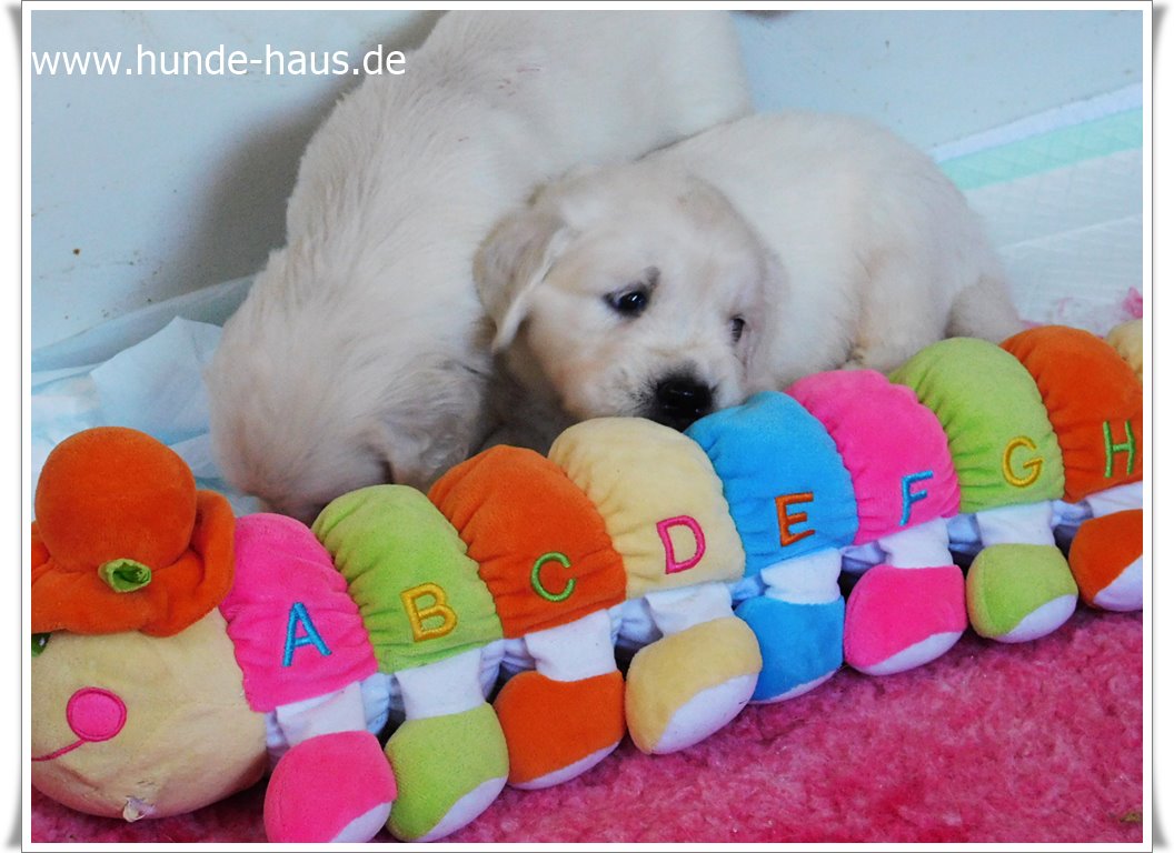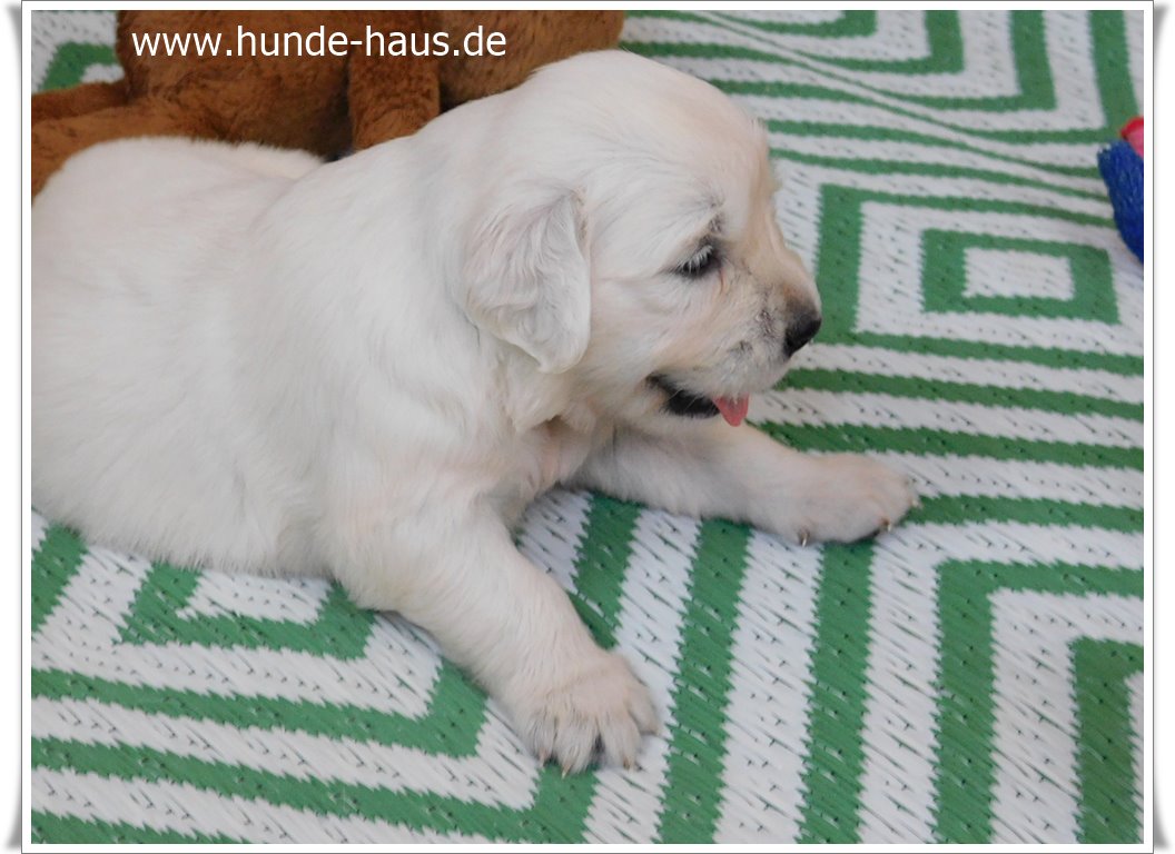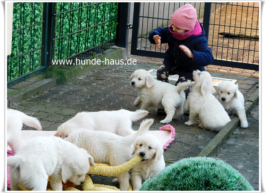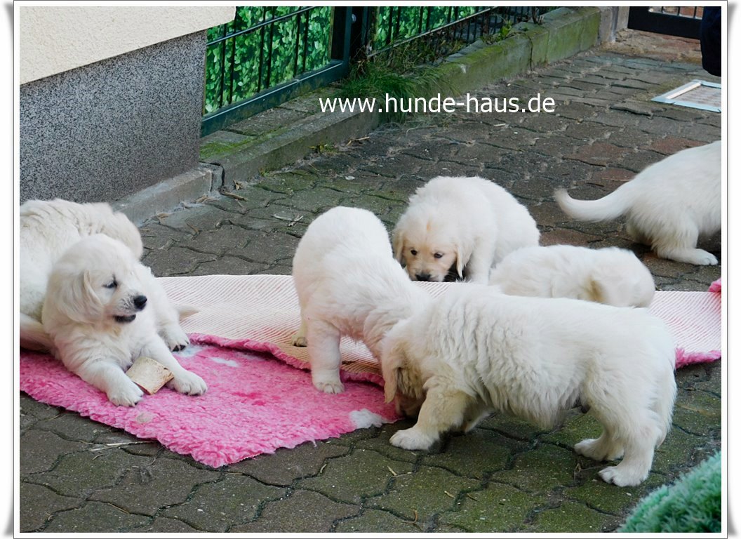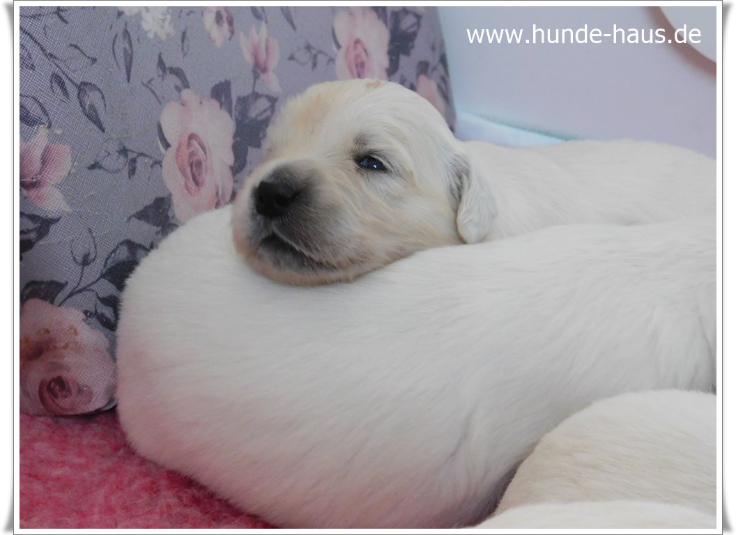 Golden Retriever Babys sind so wunderbar, und die kleinen Kinder von Hope mit ihren 5,5 Wochen sind noch ganz entspannt und fröhlich.