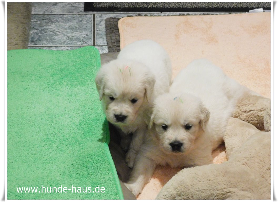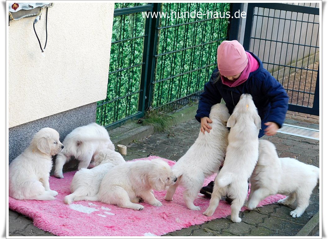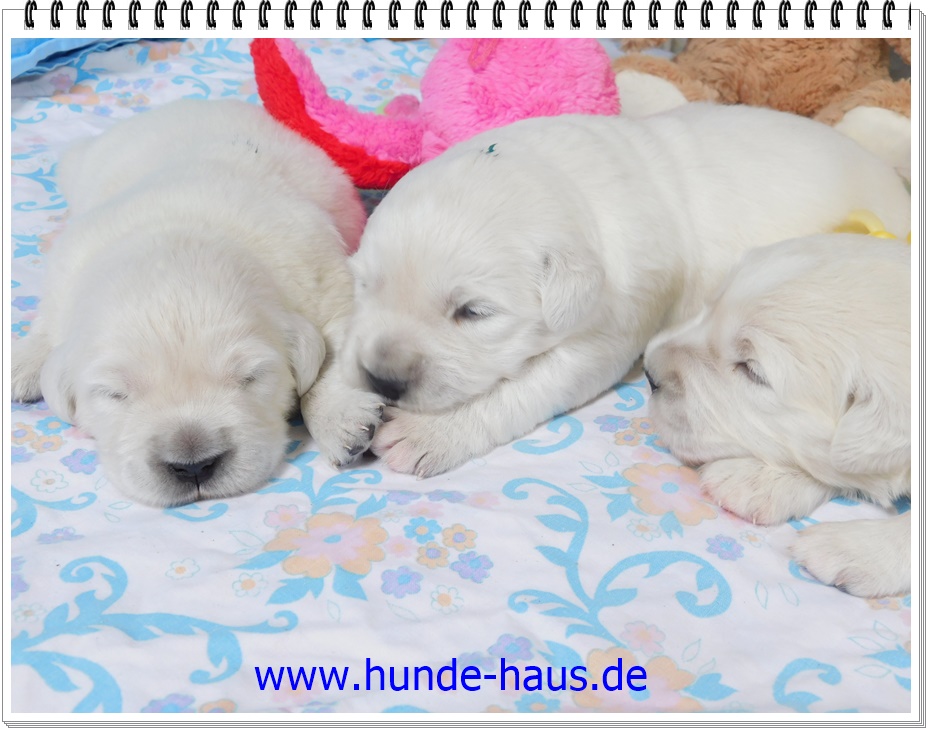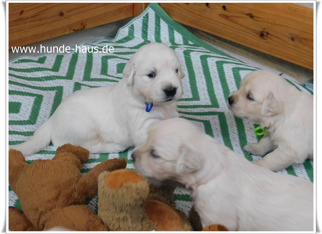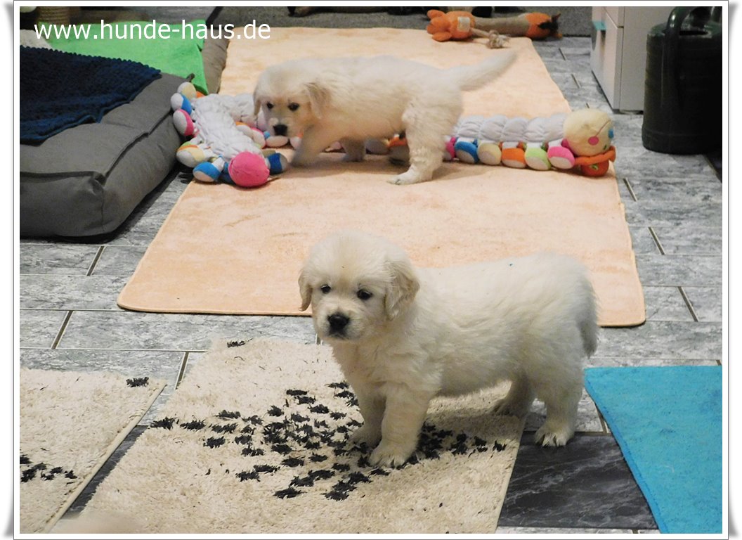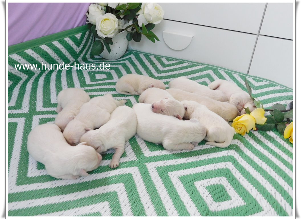 Golden Retriever Babys sind so wunderbar, und die kleinen Kinder von Hope mit ihren 5,5 Wochen sind noch ganz entspannt und fröhlich.